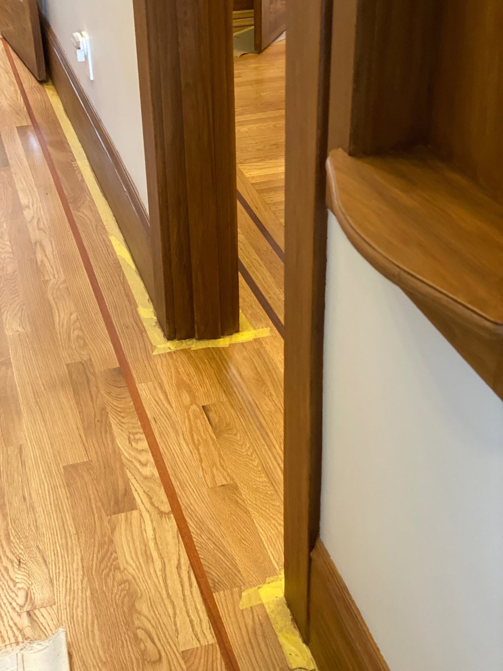Leandro's faux bois work is executed using traditional techniques — layering translucent glazes over a carefully prepared base coat, then manipulating the wet glaze with a range of specialized tools including combs, graining rockers, badger hair softeners, and fine artist's brushes to replicate the organic patterns of real wood grain. Each species has its own distinct character and requires its own approach (walnut first, then eucalyptus shown in pictures). A convincing bird's-eye maple demands a completely different set of tools and movements than a straight-grained white oak or a dramatically figured walnut crotch. Leandro has spent years mastering each of these, studying both historic examples and actual wood samples to ensure his work achieves a level of realism that stops visitors in their tracks.